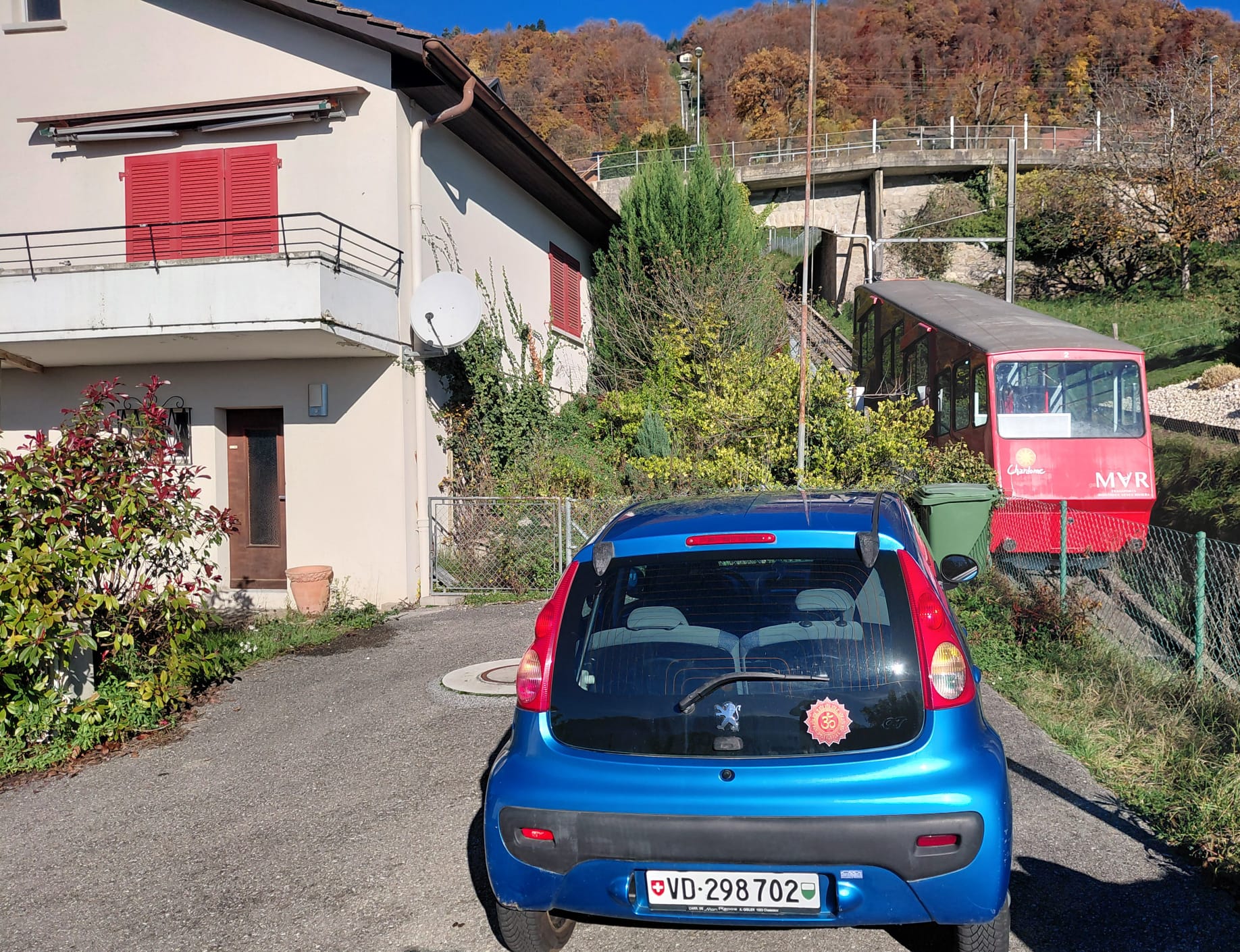 Merci de parquer à côté de cette voiture bleue, à gauche du ch. des Sorbiers, puis quelques pas et à droite l’entrée au no 8 où je vous attends avec plaisir ! Depuis Lausanne, sortie de L’autoroute à Chexbres.